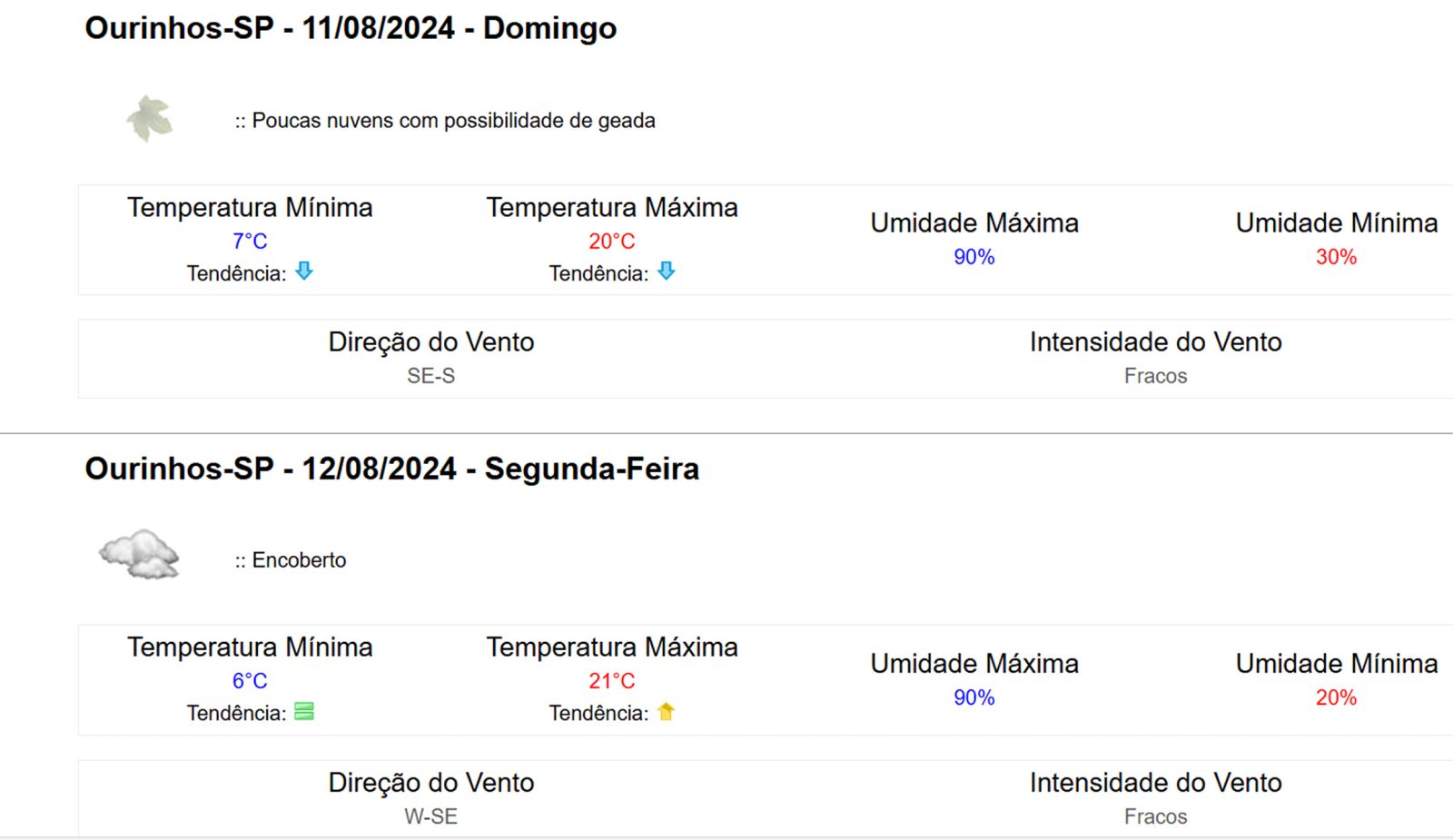 Após Ourinhos ter registrado uma máxima de 35°C, no último sábado (3) a previsão é este sábado (10) seja o dia mais frio, desde o início do mês, registrando uma mínima de 7°C e uma máxima de 20°C.