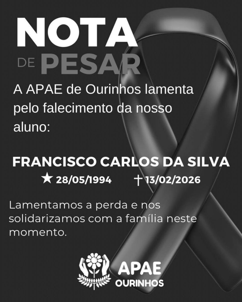 A cidade também se despede do jovem Francisco Carlos da Silva, de 31 anos, aluno da APAE, cujo falecimento gerou grande comoção na comunidade. O velório ocorre neste sábado, das 8h às 16h, no Velório Municipal de Ourinhos, onde também será realizado o sepultamento.