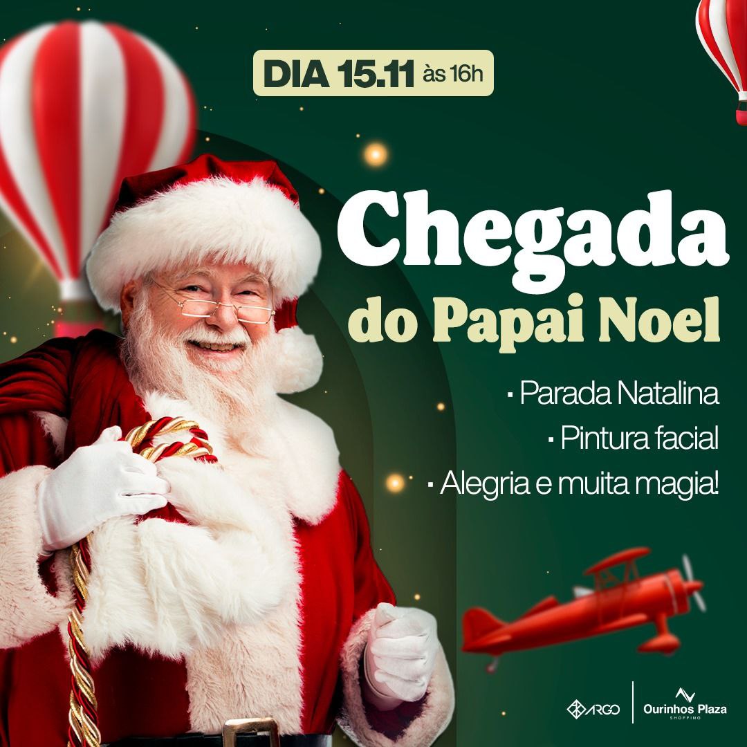 O clima natalino invadirá o Ourinhos Plaza Shopping com a aguardada chegada do Papai Noel, marcada para o dia 15 de novembro de 2023. O evento promete um dia mágico e inesquecível para toda a comunidade ourinhense, celebrando a época mais encantadora do ano.