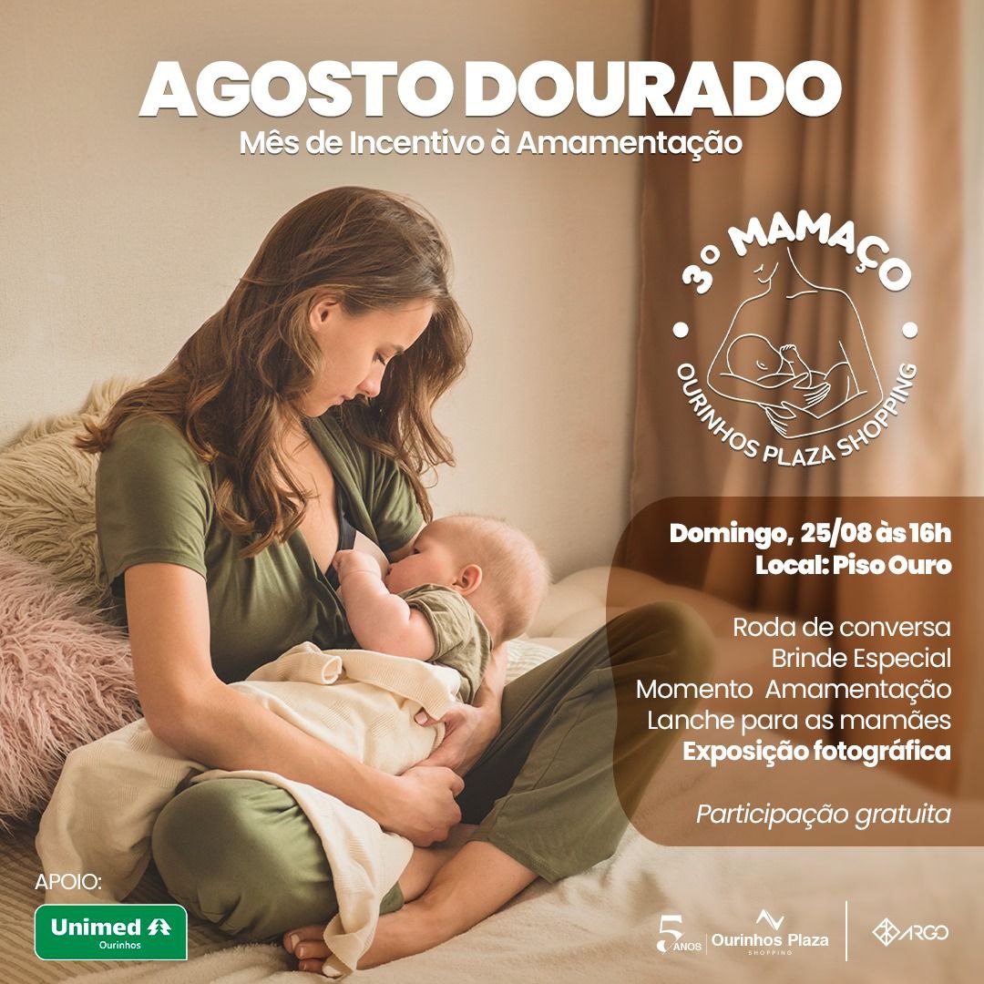 Em apoio ao Agosto Dourado, mês dedicado ao incentivo e à conscientização sobre a amamentação, o Ourinhos Plaza Shopping organiza um evento especial para celebrar e promover a importância da amamentação. O evento ocorrerá no próximo domingo, dia 25/08, e contará com uma programação variada e enriquecedora para toda a família.