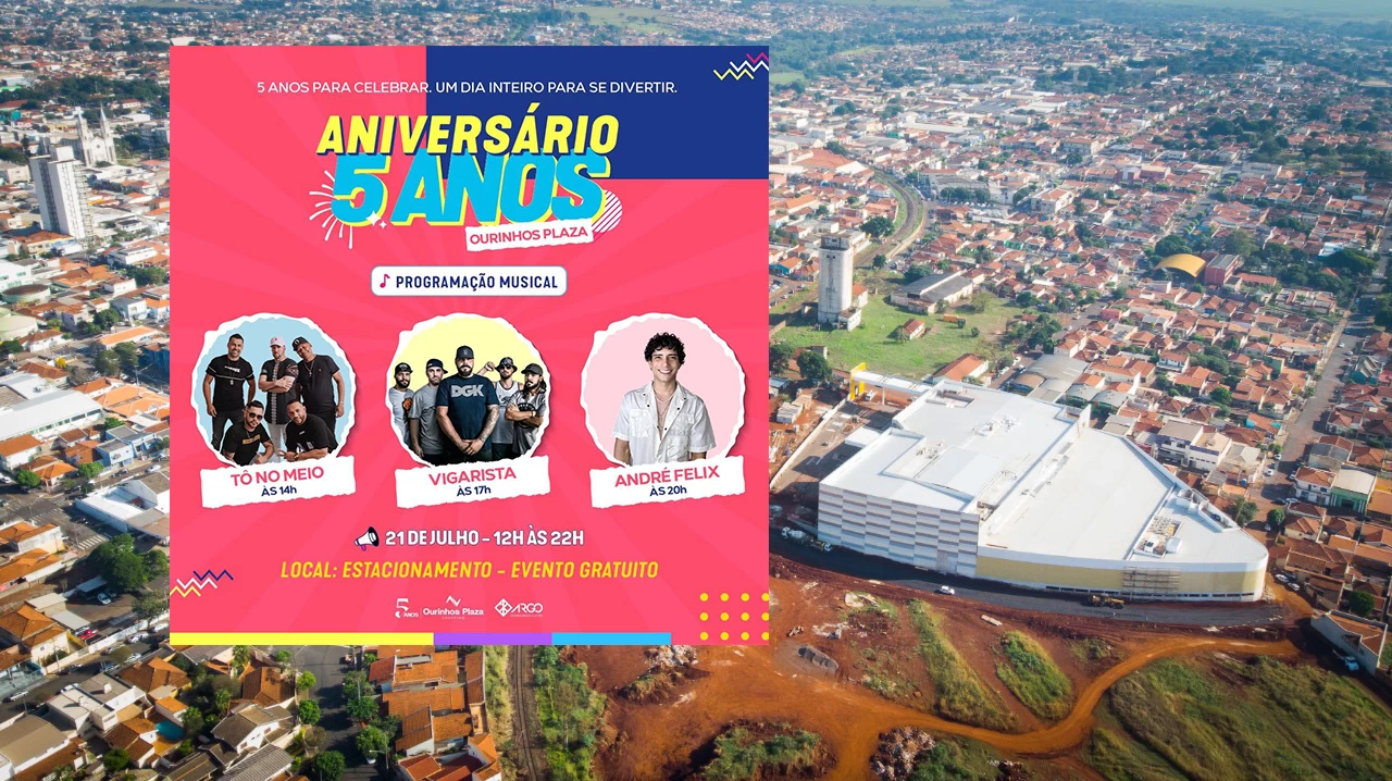 Tem comemoração vindo aí! O Ourinhos Plaza Shopping irá completar 5 anos e para celebrar seu novo ciclo, a administração do shopping realizará um grande evento no próximo domingo, dia 21, no estacionamento térreo do empreendimento.