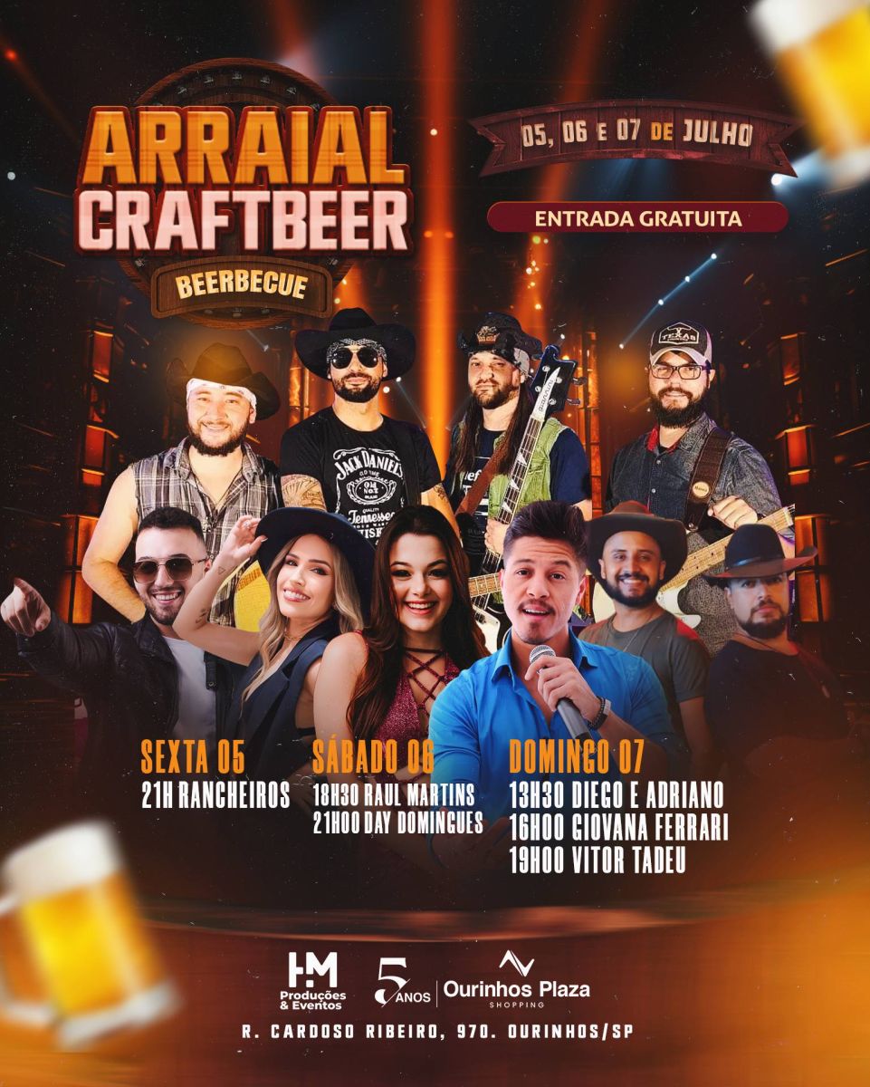 Prepare-se para uma experiência inesquecível! Nos dias 05, 06 e 07 de julho, o Arraial Craft Beer chega a Ourinhos (SP), trazendo o melhor da cerveja artesanal e da gastronomia gourmet para a cidade. Com entrada gratuita, o evento promete três dias de muita diversão, sabores únicos e música ao vivo.