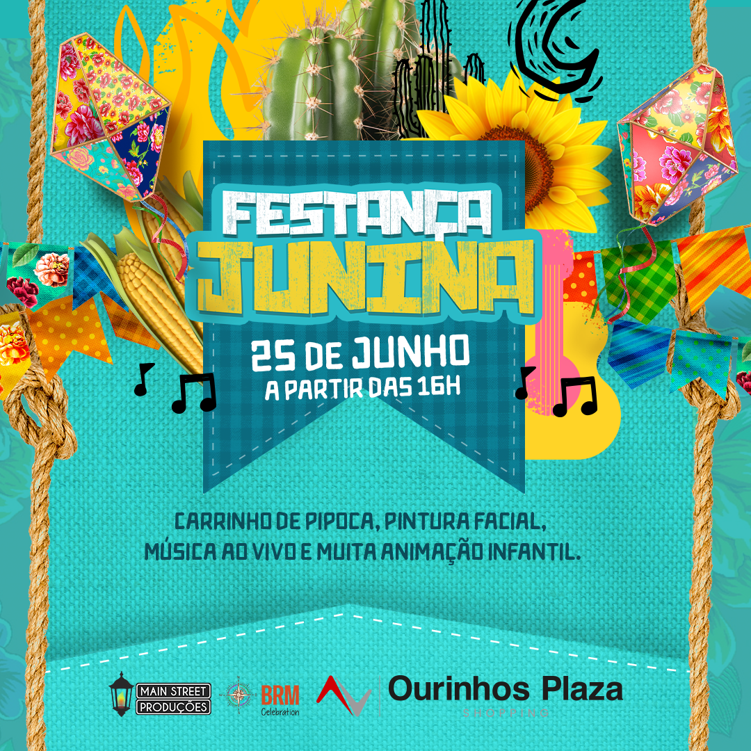 No Ourinhos Plaza Shopping vai ser diversão para mais de metrô, sô! Vem aí a melhor Festança Junina do Ourinhos Plaza, uma tarde inteirinha com presença da Família Junina, distribuição de paçoquinha, pintura facial temática no subsolo, carrinho de pipoca e brincadeiras arretadas demais. Tudo isso no dia 25 junho, a partir das 16h.