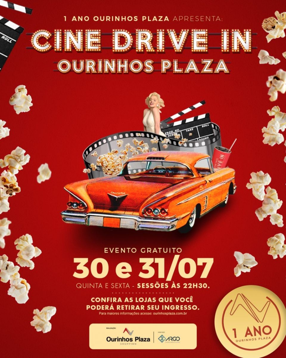 Sob o conceito “Esse shopping é coisa de cinema”, acontecerá nas próximas quinta e sexta-feira, dias 30 e 31 de julho, 2 sessões de cinema com filmes para serem assistidos de dentro do carro no estacionamento externo do Ourinhos Plaza Shopping. Essa foi uma das formas encontradas pela superintendência do shopping pioneiro na cidade para celebrar o seu primeiro ano de abertura. “Nesse momento tão delicado que estamos vivendo, preocupados ao máximo com a saúde de todos, foi uma forma segura e criativa que encontramos para comemorar essa data importante para nós e para a população regional”, disse Daniela Tambosi, superintendente do Ourinhos Plaza Shopping.