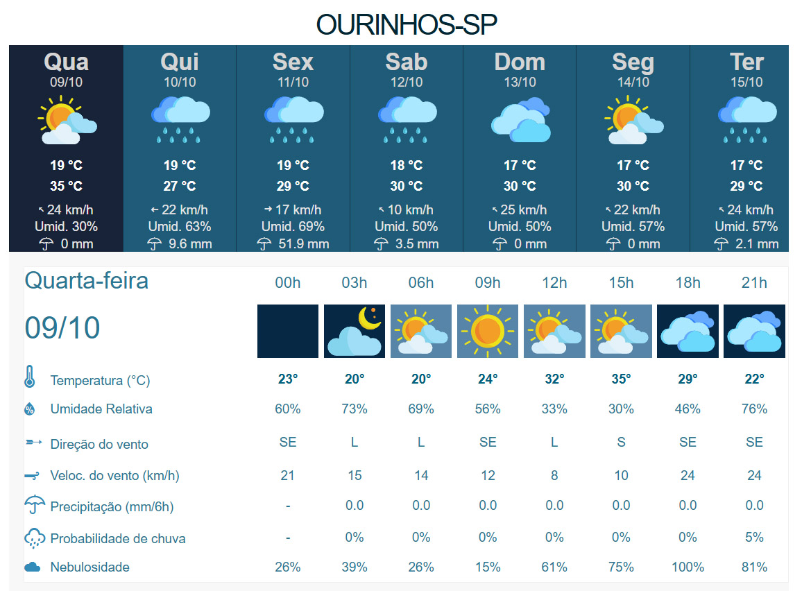 A cidade de Ourinhos (SP) pode enfrentar chuvas de moderada a forte intensidade a partir desta quinta-feira, 10 de outubro. O Instituto Nacional de Meteorologia (Inmet) emitiu dois alertas de risco de tempestades para o estado do Paraná, com possibilidade de extensão até Ourinhos, devido à proximidade com a divisa estadual.