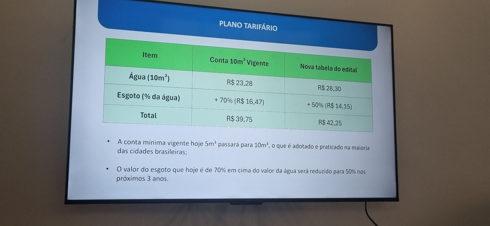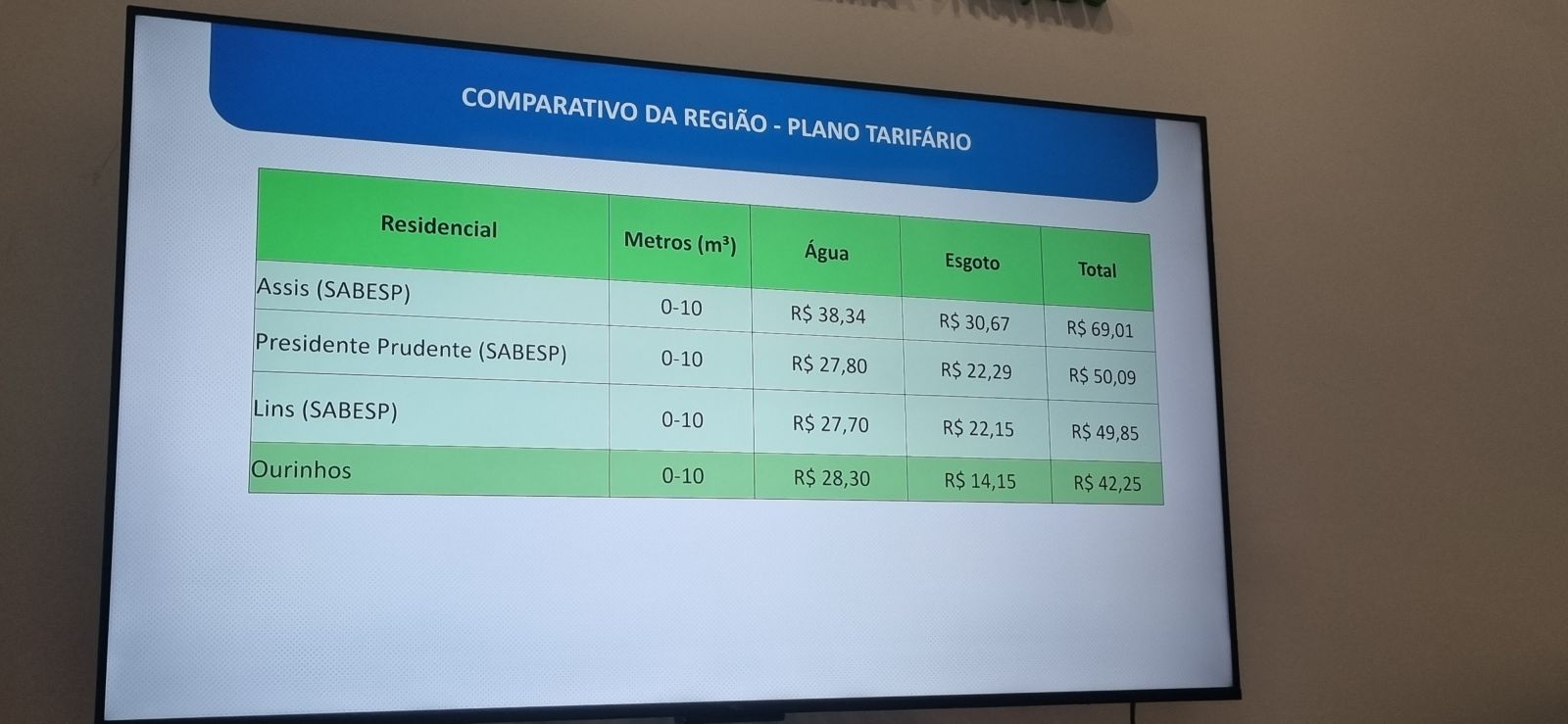O valor do serviço de água será reajustado, elevando o custo de 10m³ de R$ 23,28 para R$ 28,30, mas, considerando a redução na tarifa de esgoto, o valor final de 10m³ subirá dos atuais R$ 39,75 para R$ 42,25, representando um aumento de R$ 2,50 (6,5%), ainda competitivo em comparação com cidades como Assis, Presidente Prudente e Lins, onde o serviço é prestado pela SABESP.