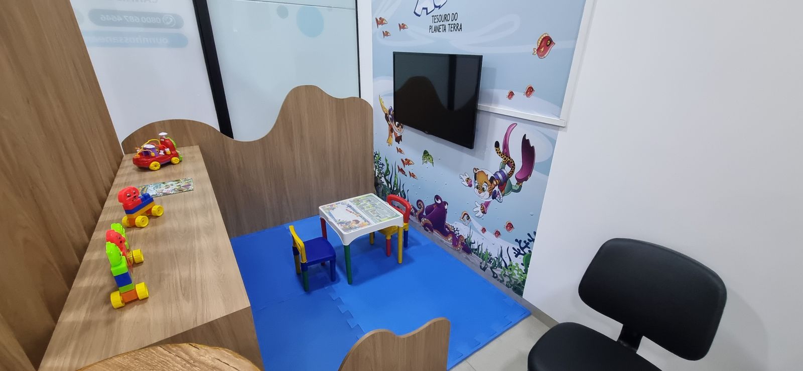 Espaço para as crianças no hall de entrada (Foto: Reprodução)