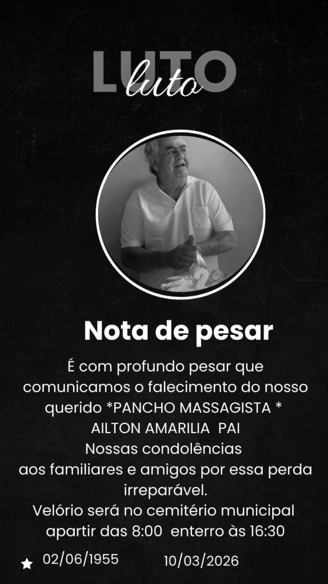 Faleceu nesta terça-feira (10), em Ourinhos, aos 70 anos, Ailton Amarília, conhecido na cidade como Pancho Massagista, profissional bastante conhecido por atuar por muitos anos na área de massoterapia e atendimento à comunidade local.