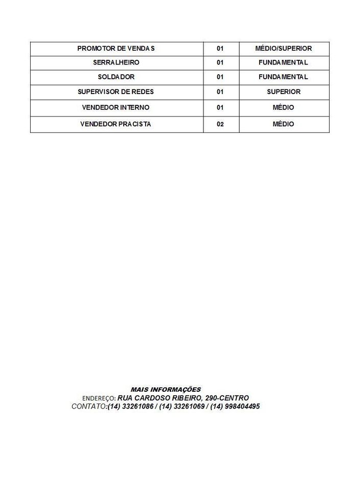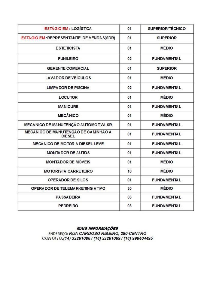 O mercado de trabalho em Ourinhos, nesta quarta-feira, 9, está com 90 vagas de emprego oferecidas no PAT (Posto de Atendimento ao Trabalhador). Para obter todas as informações, basta ligar: (14) 3326-1086 / (14) 3326-1069 / (14) 99840-4495 (14) 3322-5000. Confira abaixo as vagas: