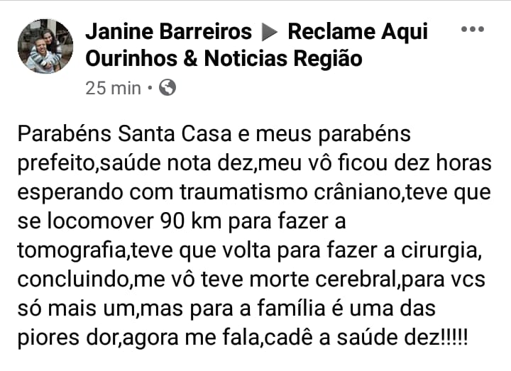 A família do aposentado Nelson Bueno do Prado de 70 anos, que caiu de uma escada, de uma altura de aproximadamente de 5 metros, na tarde da última quinta-feira, 6, e faleceu na noite deste domingo, 9, na Santa Casa de Misericórdia de Ourinhos, depois de não resistir a uma cirurgia na cabeça, após sofrer afundamento de crânio, acredita que a falta do tomógrafo foi determinante para a morte do aposentado.