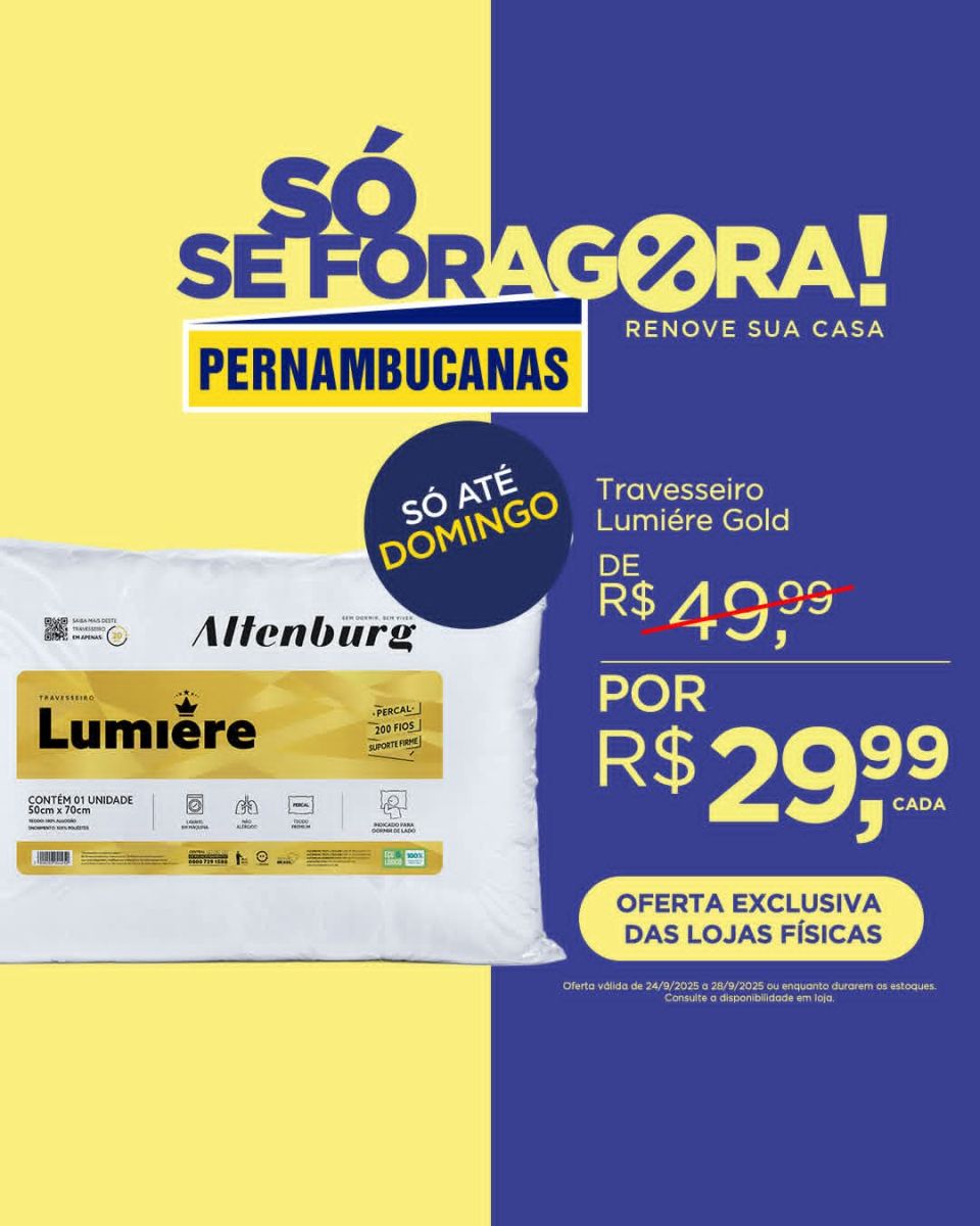 - Travesseiro Lumiere Gold de R$ 49,99 por R$ 29,99