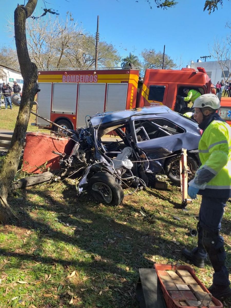 O Corpo de Bombeiros realizou o desencarceramento da vítima, que morreu no local. A corporação informou que o evento tinha alvará.