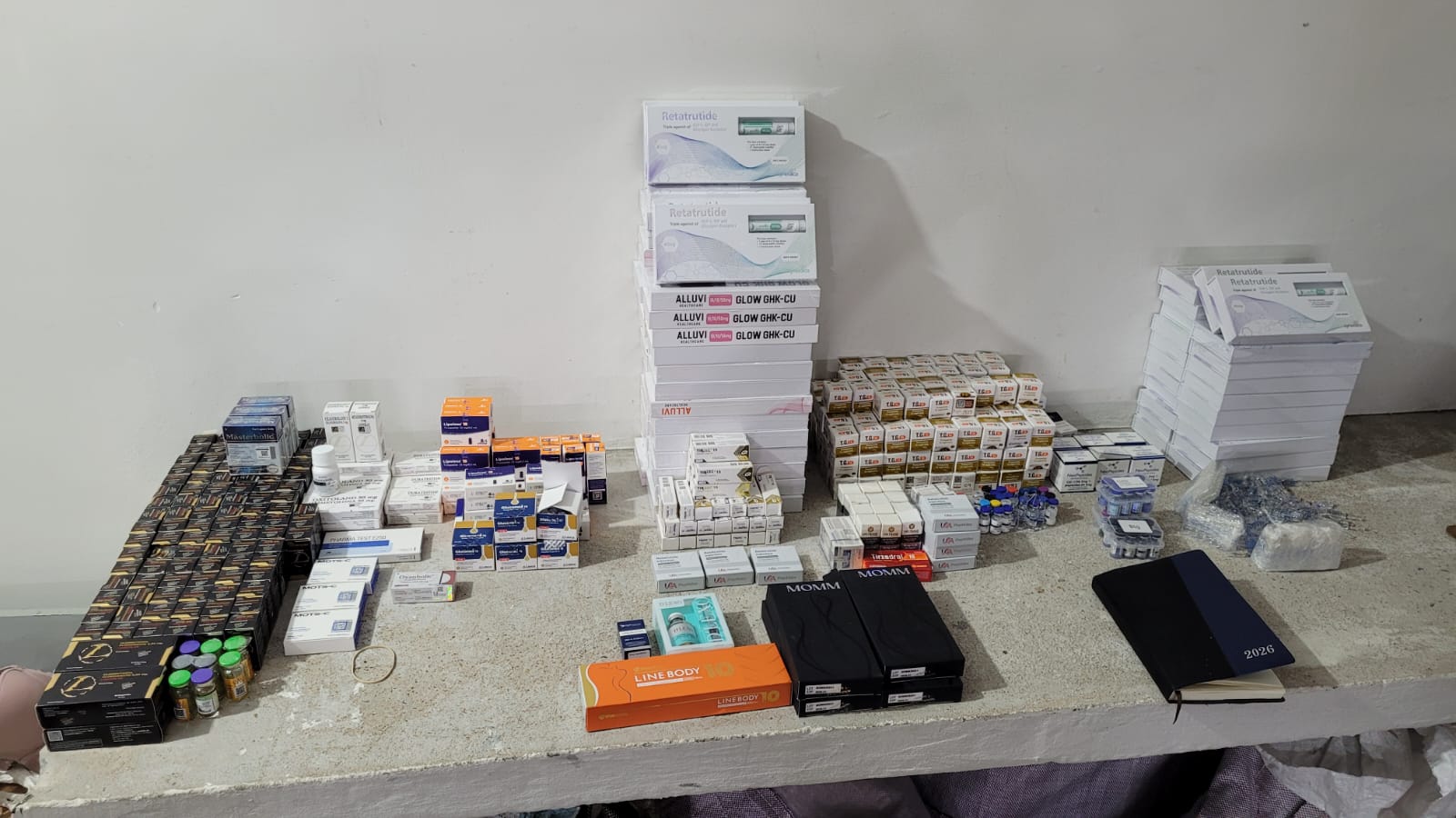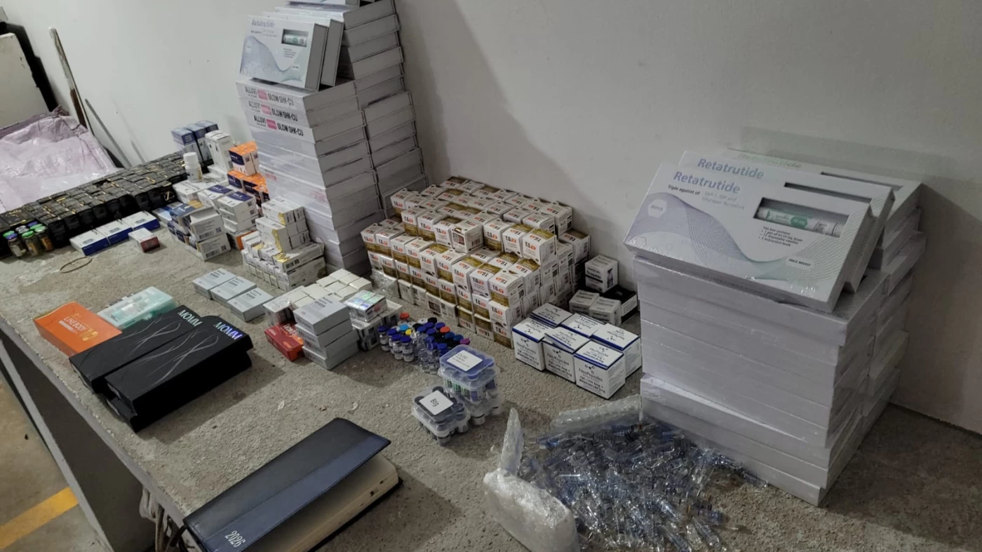 Ao todo, foram apreendidas 455 unidades de produtos irregulares. Entre os itens estão medicamentos classificados como emagrecedores, peptídeos e substâncias anabolizantes. As chamadas “canetas emagrecedoras” continham compostos como tirzepatida e retatrutida — sendo esta última ainda em fase de estudos e sem registro para comercialização no Brasil pela Agência Nacional de Vigilância Sanitária, o que torna o caso inédito na região, segundo a polícia.
