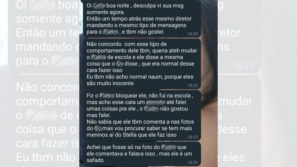De acordo com o boletim de ocorrência, registrado em 11 de maio, a mãe do aluno revelou ter encontrado mensagens inapropriadas na rede social do filho. Nas mensagens, o diretor da escola teria feito comentários considerados inadequados em relação ao estudante do 9º ano. Entre as mensagens, havia repetição do termo "te amo" e comentários como "saudades" e "segunda vou ver vocês", conforme consta no registro policial.