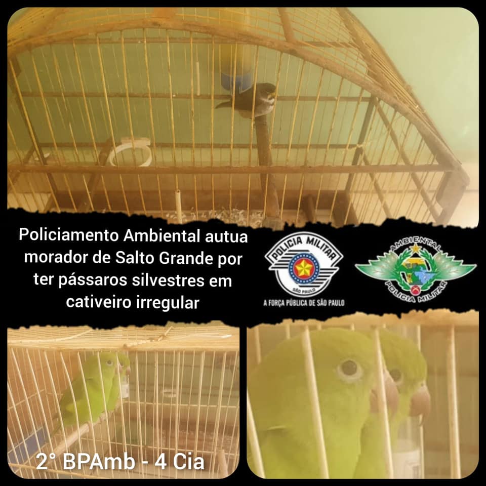Também nesta terça-feira,27, no município de Salto Grande (19 km de Ourinhos), em operação conjunta com a Polícia Civil com mandados de busca domiciliar, localizaram em uma das residências aves silvestres em cativeiro sem autorização.