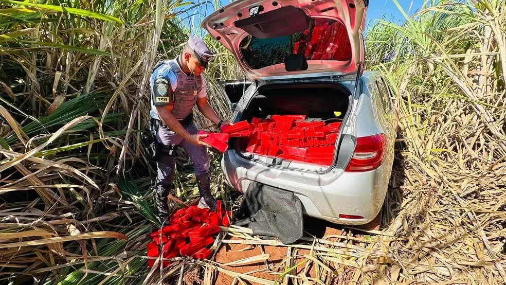 O motorista do veículo desobedeceu a ordem de parada e fugiu, abandonando o carro em meio a um canavial. Apesar das buscas, ele não foi localizado. No interior do veículo, os policiais encontraram 449 tabletes de maconha.