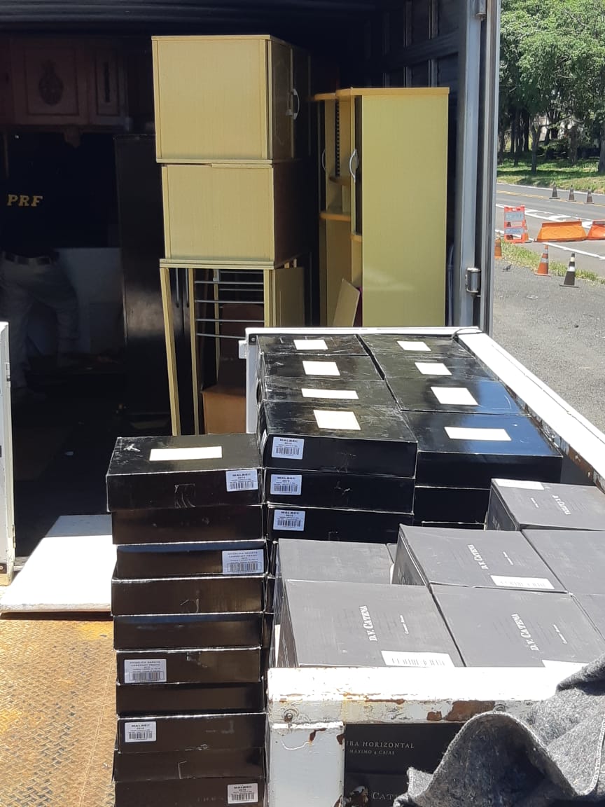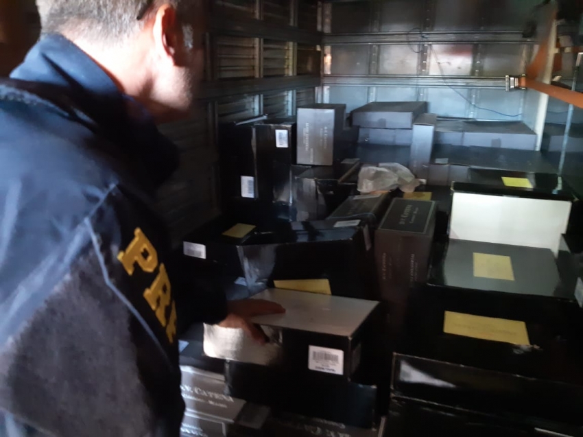 As mais de 2,3 mil garrafas de vinho de nacionalidade argentina, avaliadas pela PRF em cerca de R$ 615 mil, estavam escondidas entre móveis, como sofás e armários, nos fundos de um caminhão-baú. A carga não tinha nenhuma documentação.