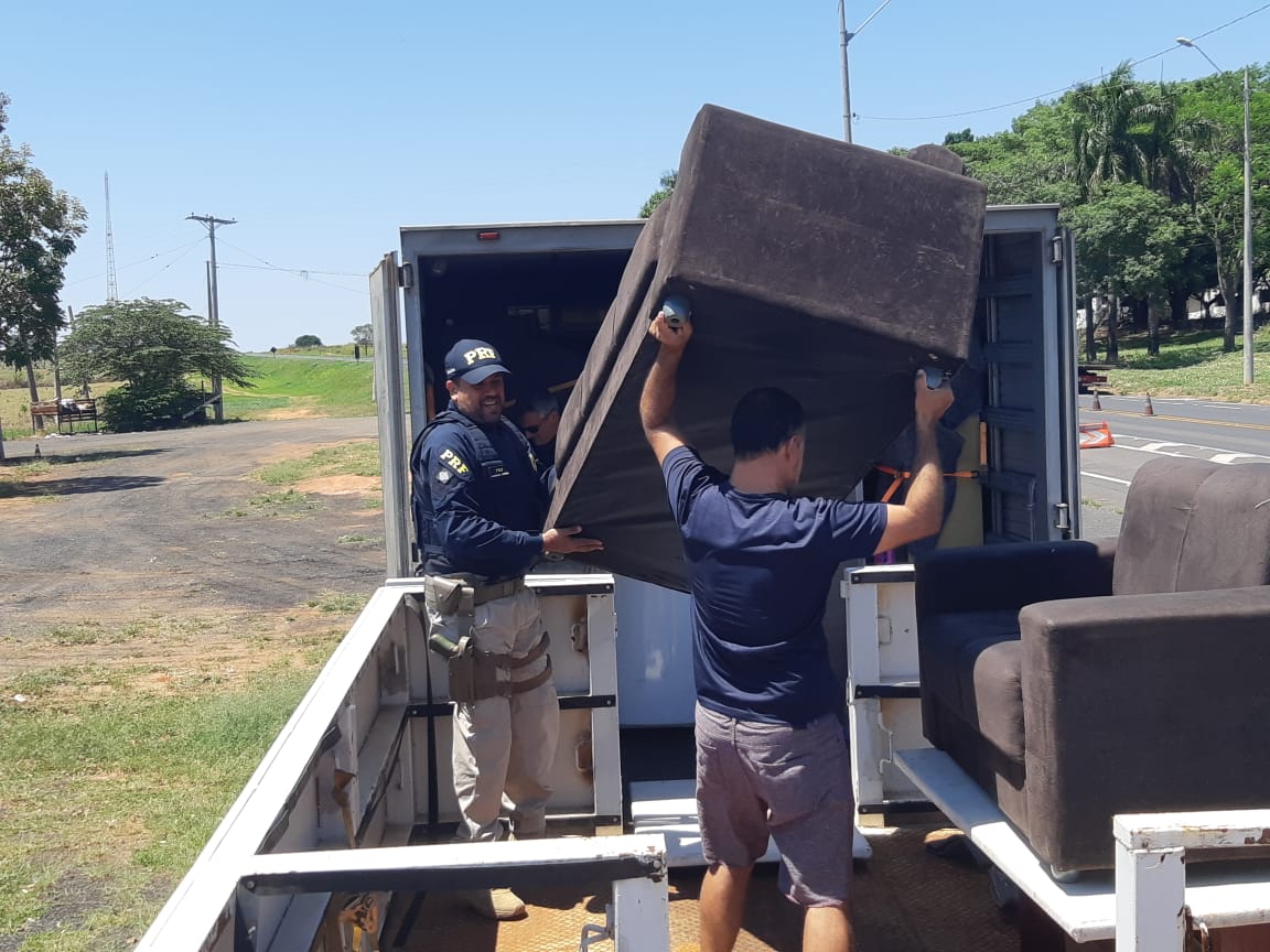 Os dois homens que estavam no caminhão, de 31 e 39 anos, disseram que saíram da cidade de Flor da Serra (SC) e que estariam transportando uma mudança para a cidade de Itajobi (SP), mas a dupla também não tinha documentação da mudança, como contratante ou endereço de entrega.