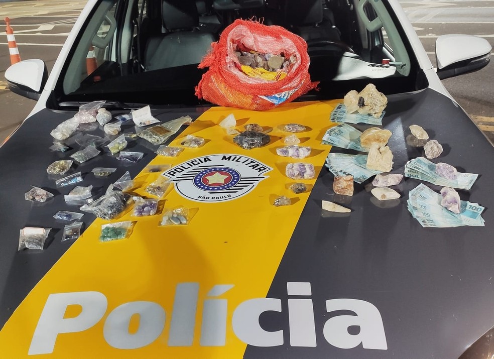 Além das pedras preciosas, a PRE também apreendeu o carro e R$ 5 mil em espécie.