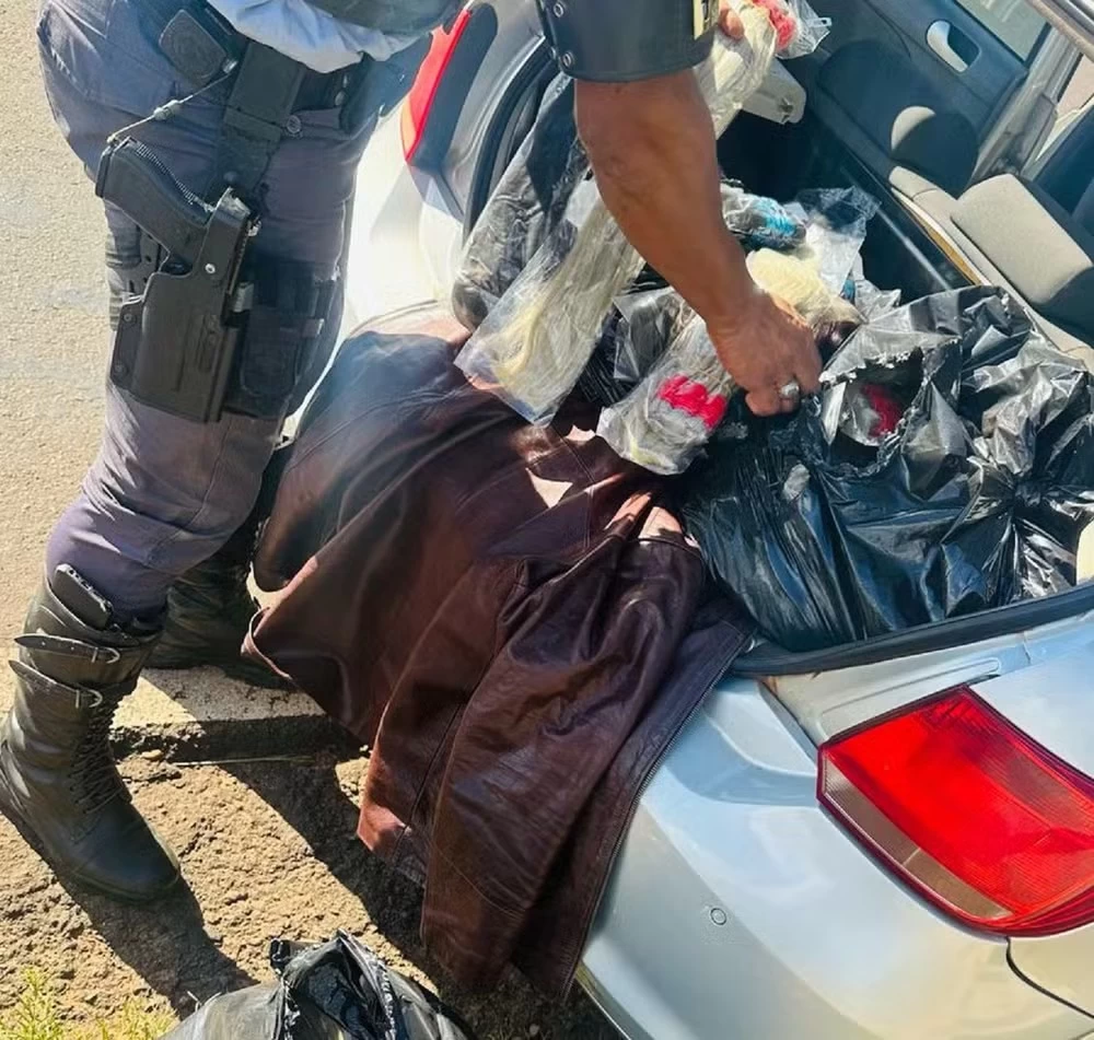 A Polícia Rodoviária apreendeu, nesta quarta-feira (30), cerca de 169 quilos de cabelo humano durante uma abordagem na Rodovia Raposo Tavares (SP-270), em Presidente Epitácio (SP). A carga, avaliada em aproximadamente R$ 300 mil, estava acondicionada em sacos plásticos no porta-malas de um veículo com placas de Ponta Porã (MS).