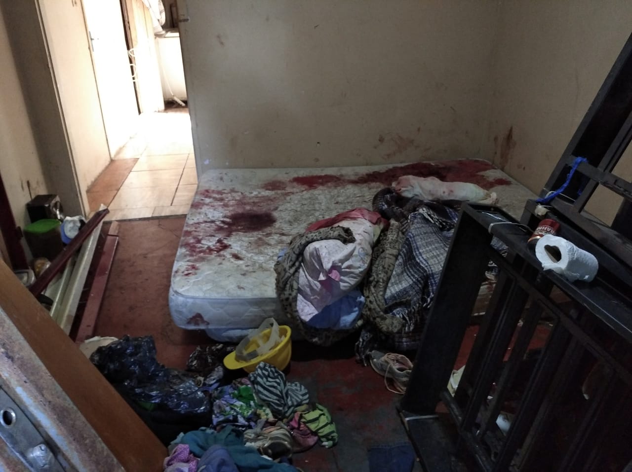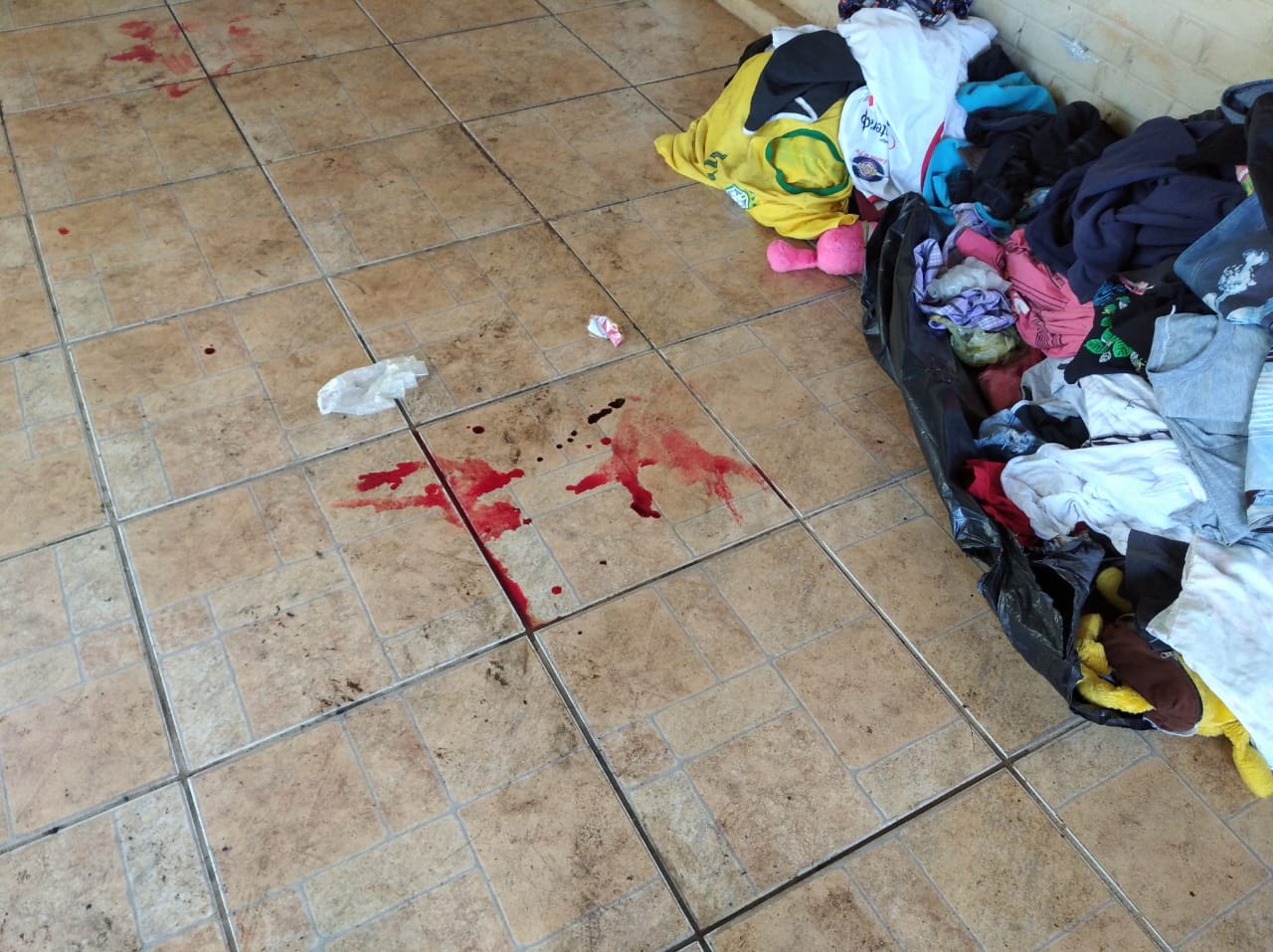 Muito sangue no chão e roupas jogadas na casa da chácara do Policial da reserva (Foto: Alexandre Mansinho)