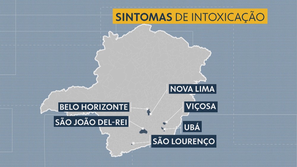 Cidades onde foram notificados sintomas de intoxicação — Foto: Editoria de Arte/Globo