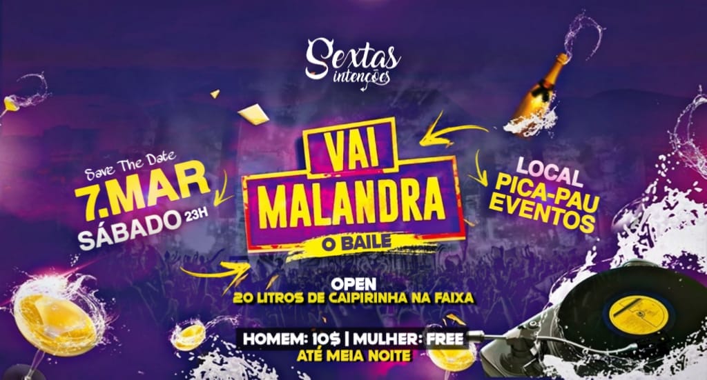 Benner do evento que foi amplamente divulgado. Baile começou às 23h e serviu até meia noite 20 litros de caipirinha de graça (Foto: Divulgação nas redes sociais)