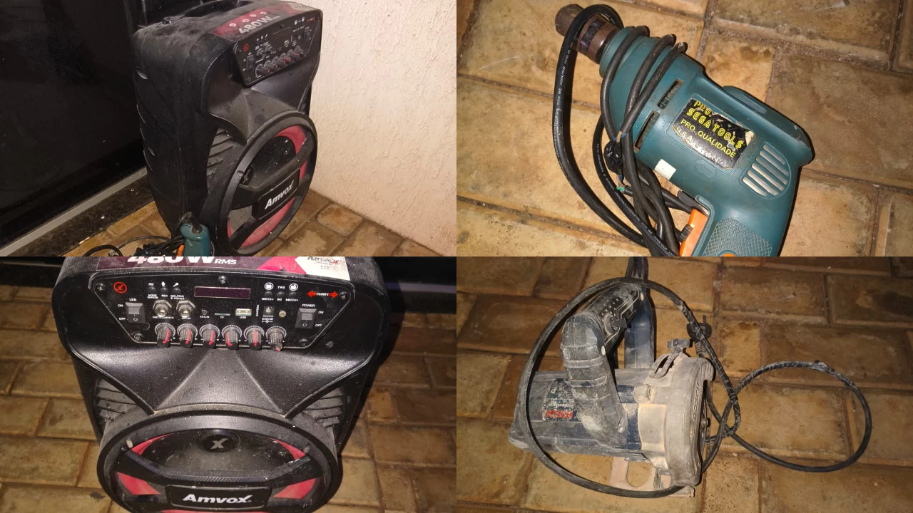 Na sequência, os policiais foram até uma residência na Vila Jardim Brasil, onde visualizaram, ainda da via pública, um dos televisores furtados instalado na parede da sala. No local, foi abordado o morador, identificado como Matheus. Segundo a versão policial, ele teria admitido que adquiriu o aparelho em troca de entorpecentes e que outros objetos encontrados na casa também teriam origem semelhante.