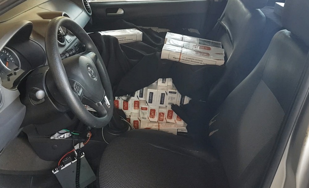 Os policiais constataram que o veículo estava sem os bancos traseiros e havia espaço apenas para o condutor. O carro estava lotado de cigarros, inclusive no porta-malas, nas portas e no banco da frente.