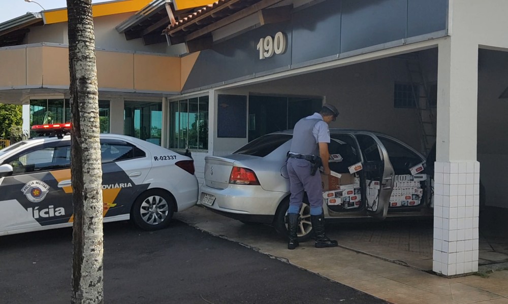 A Polícia Militar Rodoviária apreendeu um carro lotado de caixas de cigarros contrabandeados, na manhã deste sábado (18), em Marília (SP) (90 km de Ourinhos).