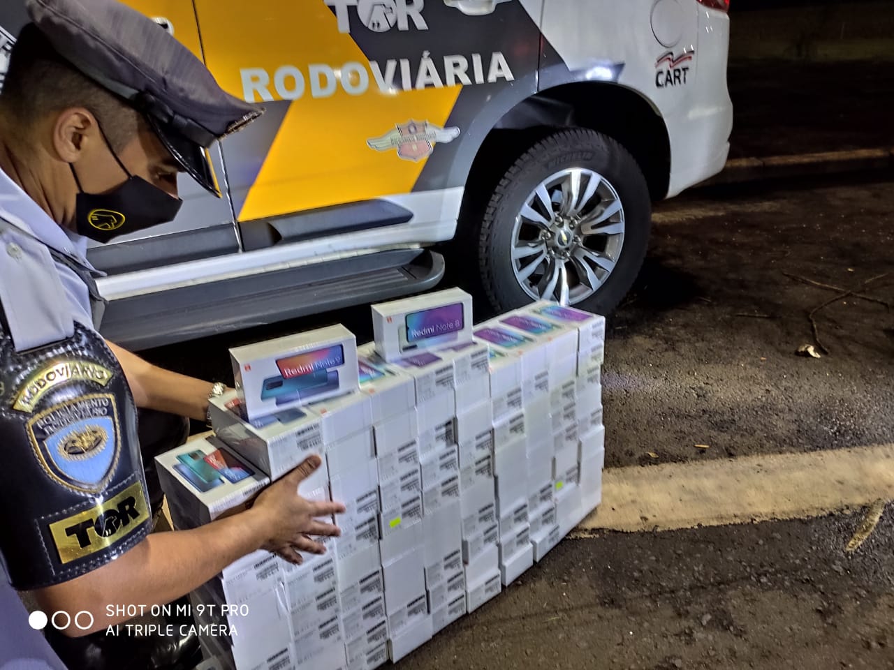 A Polícia Rodoviária Estadual apreendeu na madrugada desta segunda-feira, 28, uma grande quantidade de aparelhos celulares contrabandeados, sem nota fiscal. Os produtos estavam em um caminhão, com placas do Paraná, abordado, por volta das 2h, no km 413, da SP-270, em Palmital (50 km de Ourinhos). Confira o relato abaixo e o vídeo