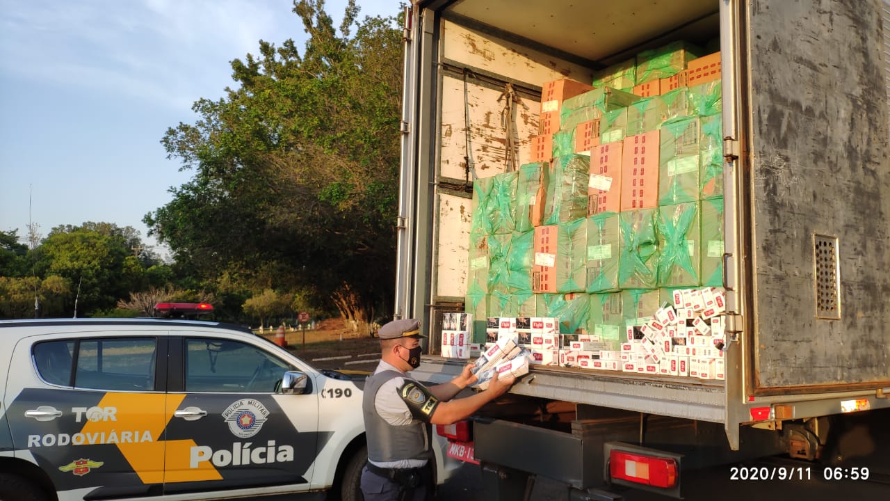 A equipe do TOR (Tático Ostensivo Rodoviário), da Polícia Rodoviária, apreendeu na manhã desta sexta-feira, 11, cigarros contrabandeados, que estavam em um caminhão, na Rodovia Raposo Tavares (SP-270), km 426 leste em Palmital (50 km de Ourinhos). A ocorrência está em andamento e deve ser encaminhada à Polícia Federal em Marília.