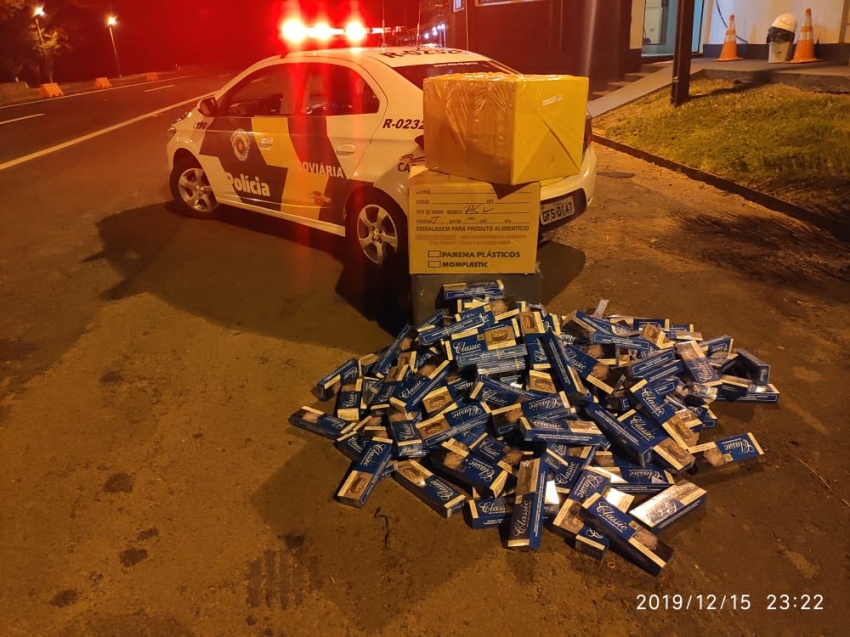 “Após receber informação anônima via COPOM, de que um passageiro que ocupava a última poltrona do Ônibus Class Tur itinerário Maringá X São Paulo, estaria transportando drogas, as equipes do Policiamento Rodoviário da Base de Ourinhos iniciaram patrulhamento e localizaram e abordaram o referido ônibus e após busca pessoal em R.M.R. de 21 anos, localizaram em seu poder 04 (quatro) cigarros de maconha dentro de um maço de cigarros, ato contínuo ao vistoriar o bagageiro foram localizadas 05 (cinco) caixas de cigarros trazidas pelo infrator sem notas fiscais. Ocorrência foi encaminhada ao DPF de Marília”, contou os policiais.