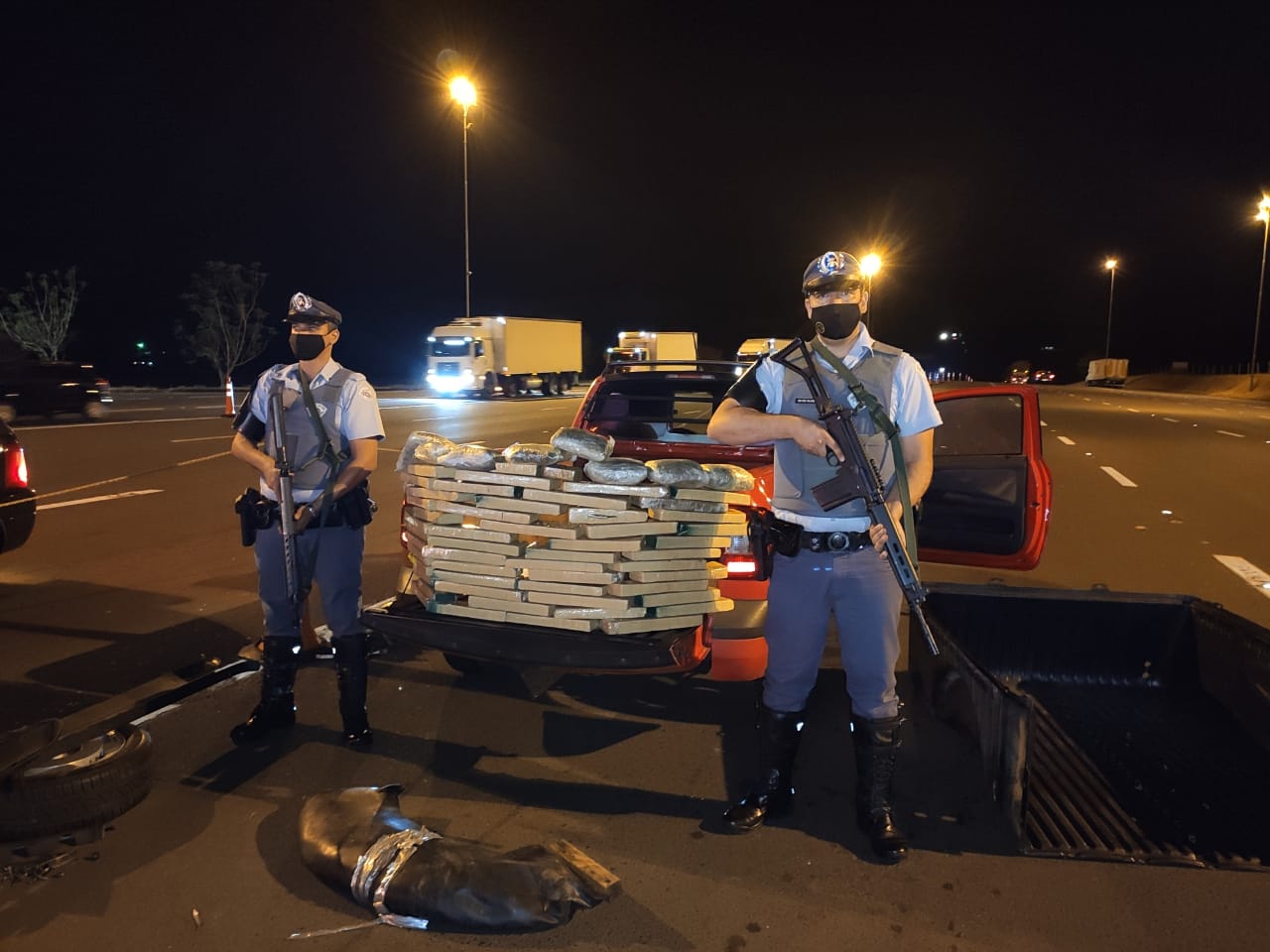 Policiais rodoviários apreenderam, nesta terça-feira, 13, mais de 47 kg de maconha e expressiva quantidade de skunk, uma tipo de maconha mais potente, em uma camionete abordada na SP-225, km 301, em Santa Cruz do Rio Pardo/SP. Um homem de 33 anos, funileiro, morador em Indaiatuba, foi preso e encaminhado à cadeia pública de São Pedro do Turvo. Confira o relato abaixo, com o vídeo: