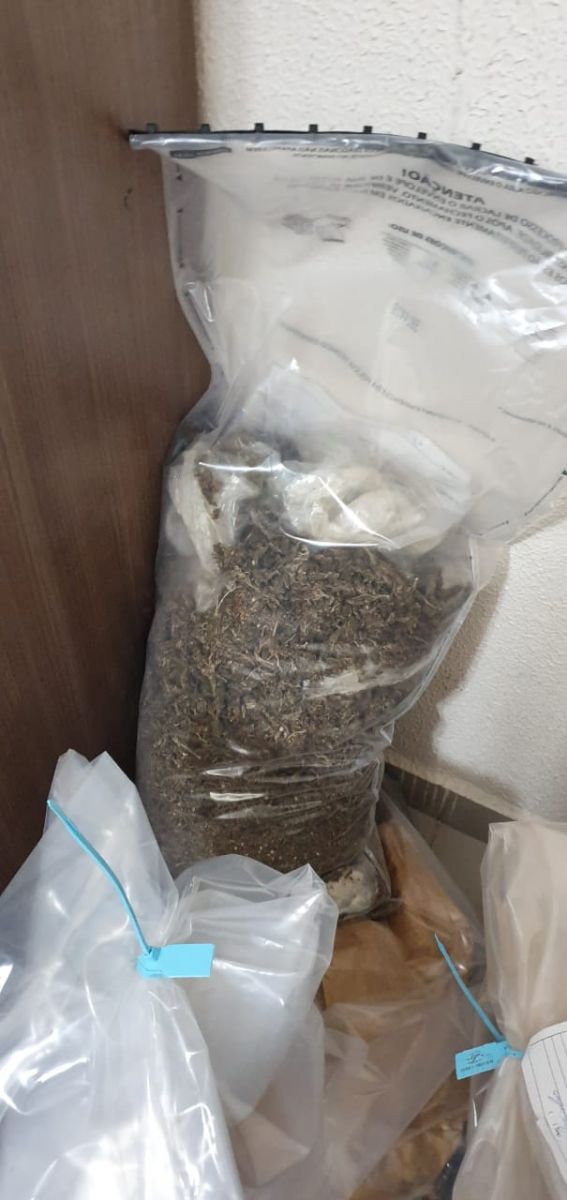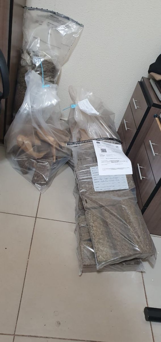 Após pesados os 53 tabletes de maconha, totalizaram 47,303kg e 08 Invólucros de Skank (totalizando 3,239kg)