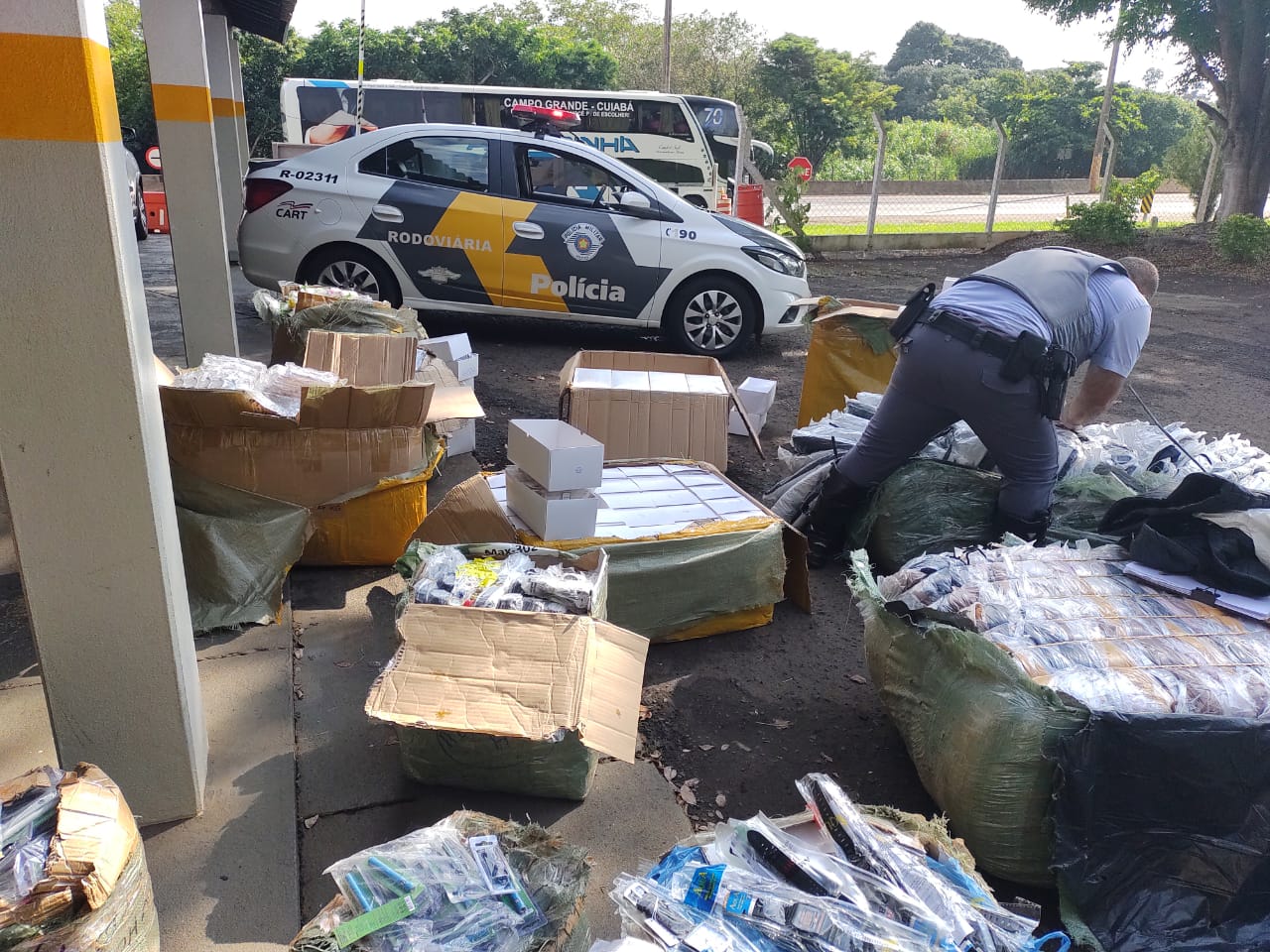 A Polícia Rodoviária apreendeu milhares de produtos contrabandeados em um ônibus de linha, na manhã deste domingo, 21, na Rodovia Raposo Tavares (SP-270), em Assis (70 km de Ourinhos).