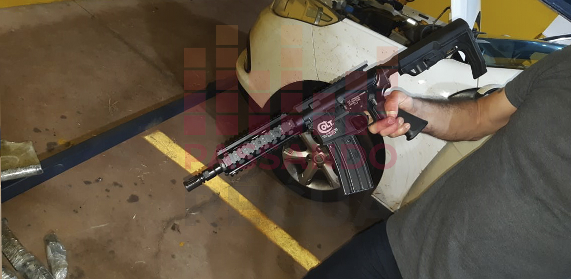As buscas resultaram na localização de 17 fuzis da Colt M4 CARABINE CAL. 5.56X45 595903, de fabricação americana, que estavam em um fundo falso, entre o porta malas e o encosto do banco traseiro.