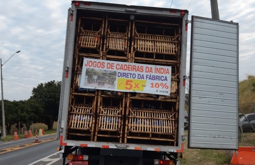 "Em 31 de julho do ano de 2020, por volta das 04 horas e 55 minutos, a PRF abordou no km 338.0 da BR 153, entroncamento com SP270, no município de Ourinhos/SP, um caminhão com placas de Curitiba/PR, o condutor do veículo, de apenas 25 anos apresentou nervosismo exagerado e informações contraditórias acerca de sua viagem, como origem e destino, o que gerou fundada suspeita para uma verificação pessoal e detalhada no veículo e na carga. Ao verificar a carga, constatou-se que o mesmo transportava uma carga aparente de CADEIRAS DE BAMBU, na parte traseira do baú, a qual ocultava uma carga ilícita de cigarros produzidos no Paraguai, sem nenhum tipo de documentação fiscal. Desse modo, foi constatado que o condutor transportava cerca de 450 caixas ou 22000 pacotes de cigarro, o que a princípio caracteriza o crime de Contrabando, motivo pelo qual, foi dada voz de prisão ao mesmo, que foi encaminhado juntamente com o veículo e a mercadoria ilícita para a Delegacia da Polícia Federal de Marília".