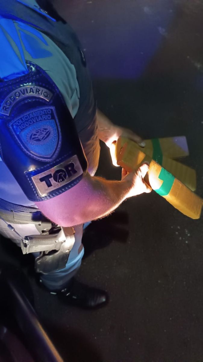 A abordagem ocorreu por volta das 19h40 e envolveu um veículo Fiat Palio, ocupado por dois indivíduos: o motorista e um passageiro. Durante a vistoria no interior do automóvel, os policiais localizaram aproximadamente 2,080 kg de maconha, escondidos debaixo do banco dianteiro do passageiro.