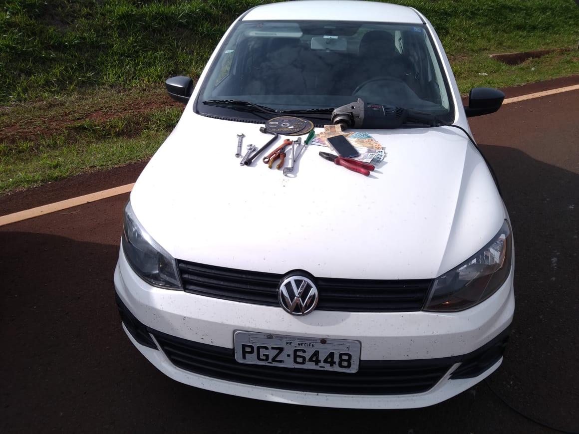 Durante Operação Paz e Proteção, pela SP 327- Rodovia Orlando Quagliato, km 14,500 a equipe TOR abordou às 08:45 o veículo VW/Voyage, placas de Recife e, durante busca pessoal localizou com passageiro R$ 2.859,00 em dinheiro no bolso de uma bermuda que usava em baixo da calça e em vistoria veicular, foi localizado no porta luvas um aparelho celular marca xiaomi redmi, onde ambos não souberam informar a propriedade. Diante das alegações desconexas dos ocupantes do veículo, foi realizado consulta via Copom na região de Assis, onde os abordados alegaram que estiveram, sendo informado que houve roubo em residência com retenção de vítima por esta manhã pelo município de Platina e que um dos veículos seria um Voyage de cor branca, placas de Recife e que levaram dinheiro, celulares, sendo um deles de marca Xiaomi Redmi o qual foi localizado no veículo. Realizado contato com a equipe do policiamento de Platina vindo a confirmar juntamente com as vítimas, que os ocupantes do veículo eram partes envolvidas no roubo a residência.