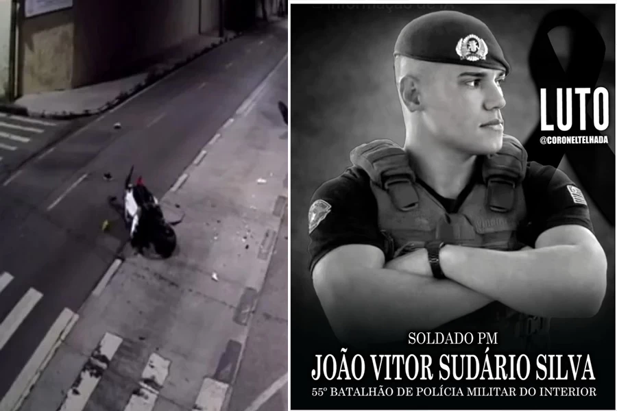 O soldado da Polícia Militar João Vitor Sudário Silva, de 22 anos, morreu nesta segunda-feira, 16, após um grave acidente de trânsito em Sorocaba, no interior de São Paulo. Câmeras de segurança registraram o momento em que o policial, de motocicleta, atingiu um guincho que avançou o sinal vermelho. As informações são do Metrópoles.