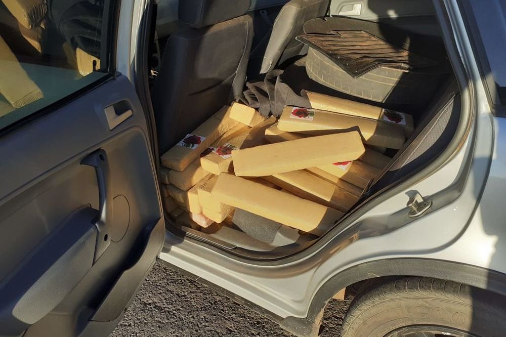 Depois do atropelamento, o motorista abandonou o veículo e fugiu a pé. No carro, a equipe policial encontrou quase 400 quilos de maconha no porta-malas do veículo.