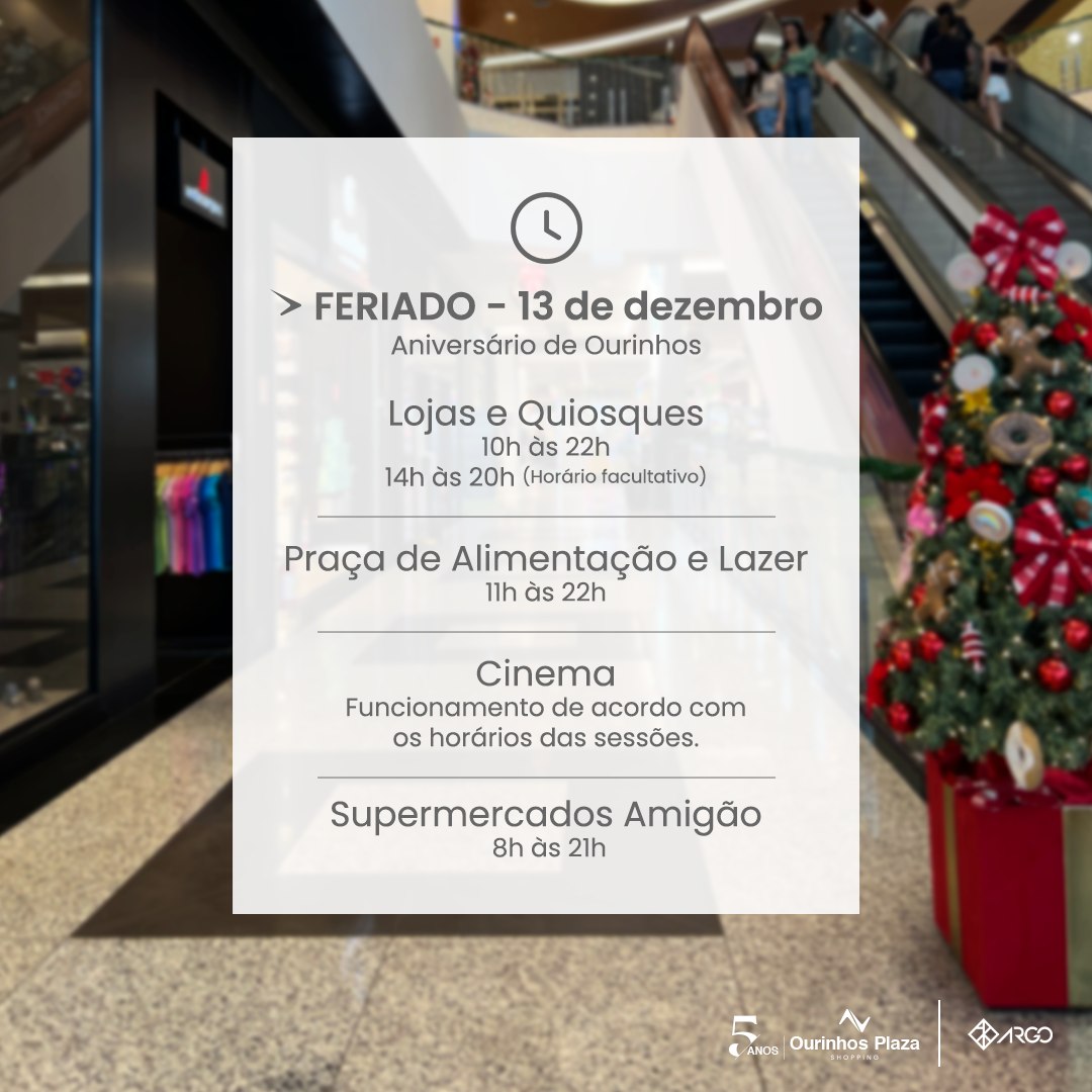 Confira o funcionamento do Ourinhos Plaza Shopping