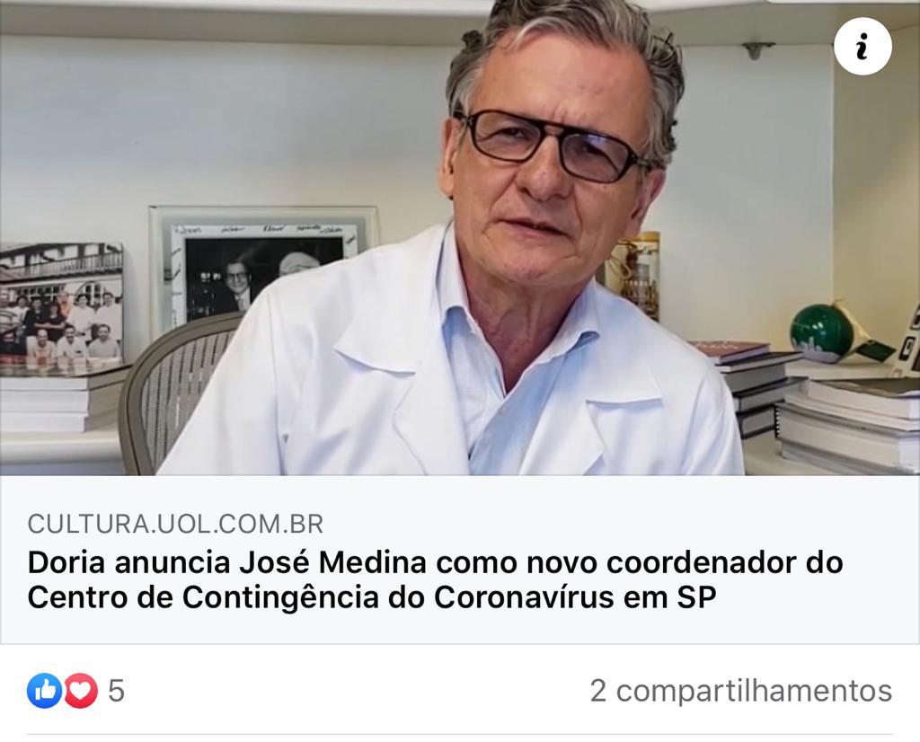 Na reunião, Dr. Medina expôs seu conhecimento sobre a doença no Brasil e no mundo e relatou os trabalhos que estão sendo realizados no Centro de Contingência do Coronavírus no Estado (CCC). Dr. Medina integra o CCC desde o mês de maio a convite do governador João Dória Jr. A instância foi criada em fevereiro deste ano para monitorar e coordenar ações contra a propagação do coronavírus no Estado, após a confirmação do primeiro caso no Brasil.