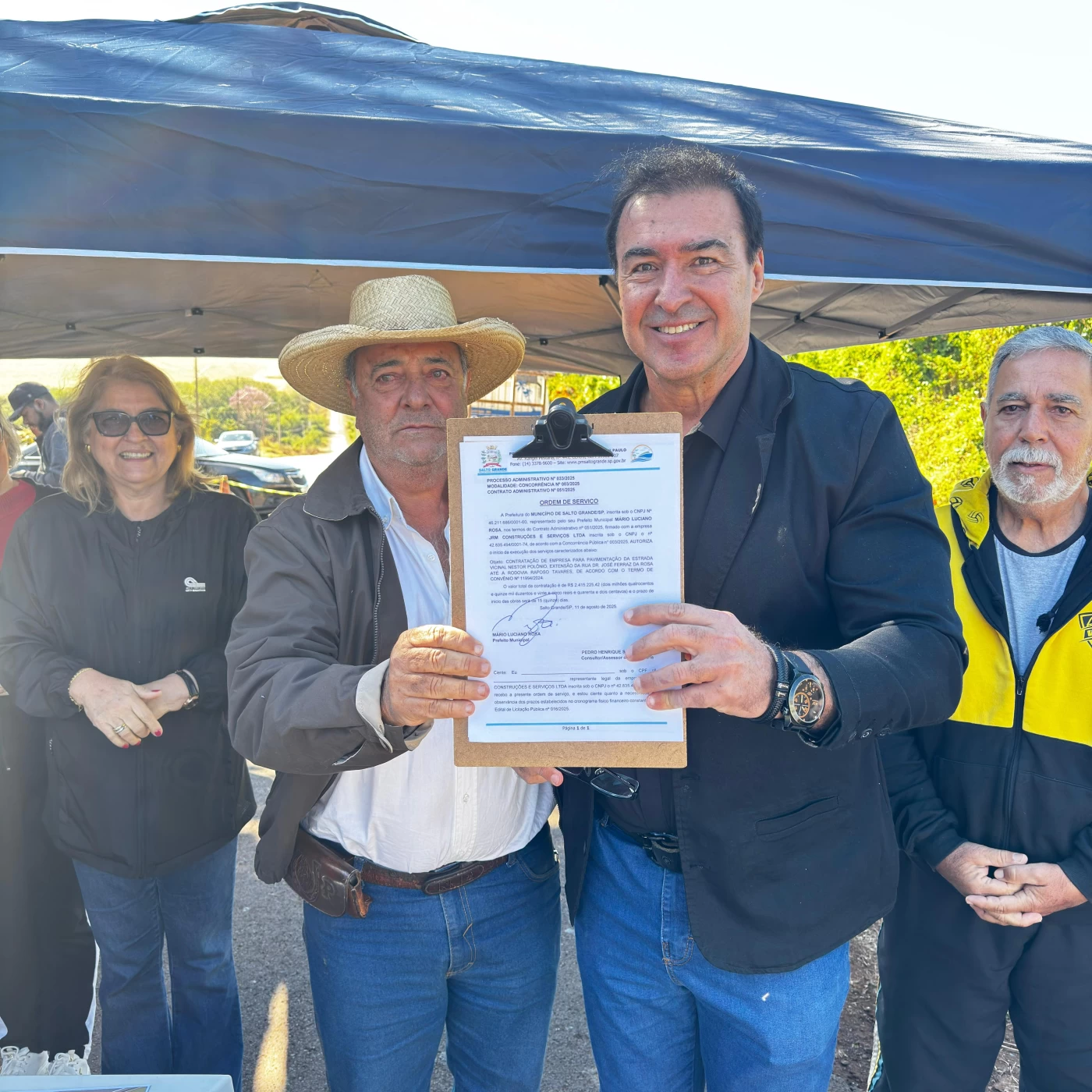 O prefeito de Salto Grande, Mario Rosa (PL) assinou oficialmente a ordem de serviço que marca o início das obras de pavimentação da Estrada Municipal Nestor Polonio. A obra, orçada em quase R$ 2,5 milhões, é um importante investimento conquistado pelo prefeito por meio do intermédio do deputado federal Capitão Augusto e da deputada estadual Dani Alonso, em parceria com o governador Tarcísio de Freitas.