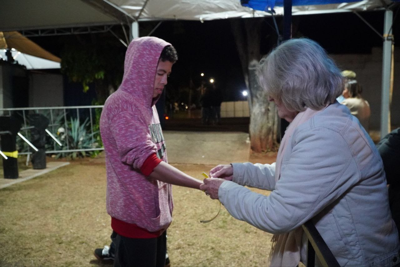 A distribuição acontece diariamente das 20h às 22h30, na entrada do recinto, e é organizada com a entrega de pulseiras, garantindo ordem e facilidade no atendimento.