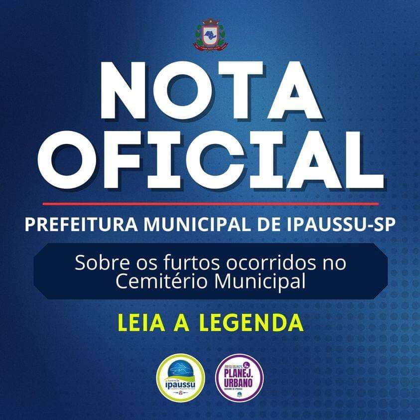 A Prefeitura de Ipaussu emitiu uma nota oficial lamentando o incidente ocorrido no Cemitério Municipal da cidade, onde 44 túmulos foram alvo de furtos. O ocorrido é descrito como triste e desrespeitoso.