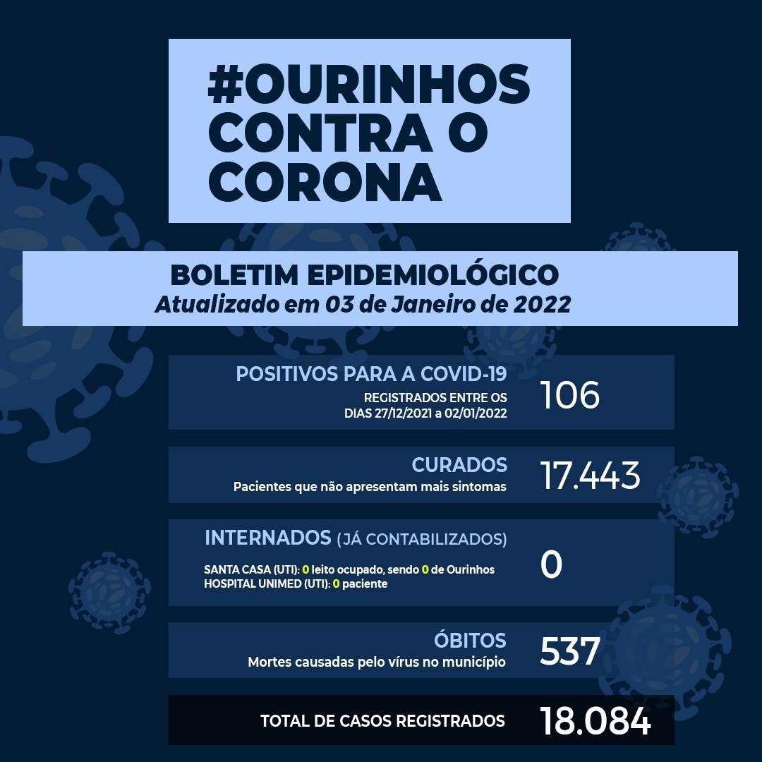 BOLETIM CORONAVÍRUS - Atualizado em 03 de janeiro de 2022