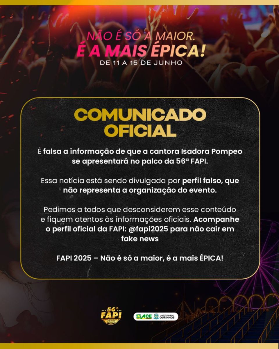 A Prefeitura destacou que a FAPI é um dos maiores eventos populares da região, com entrada gratuita e expectativa de movimentar a economia local, atraindo milhares de visitantes ao longo dos cinco dias de festa.