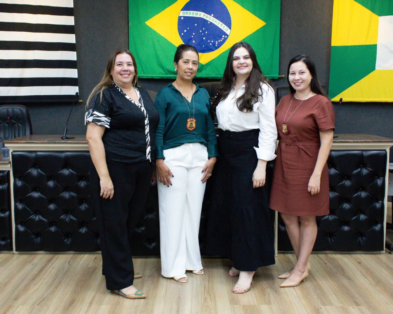 Fernanda Corazza - Procuradora da Mulher da Câmara Municipal de Ourinhos, Dra. Cristiane Braga - Delegada Seccional, secretária Municipal da Mulher e da Família - Caroline Marvuli e Delegada da Delegacia da Mulher em Ourinhos - Dra. Renata Barrinuevo